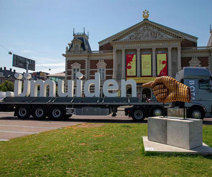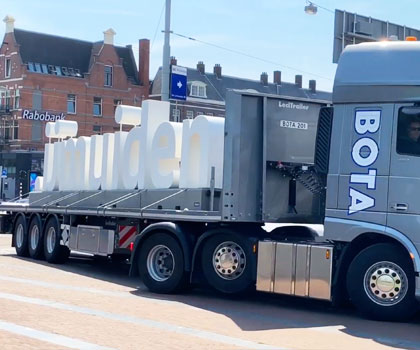 Within walking distance of BOTA the prominent .ijmuiden logo in front of the Felison Cruise Terminal welcomes more than 200,000 passengers. As a proud IJmuiden company, BOTA took the logo for a drive through Amsterdam. Right where the well known I Amsterdam logo used to be, we placed our .ijmuiden logo. The playful promotion was well appreciated by bystanders and the press also gave ample attention to the stunt.